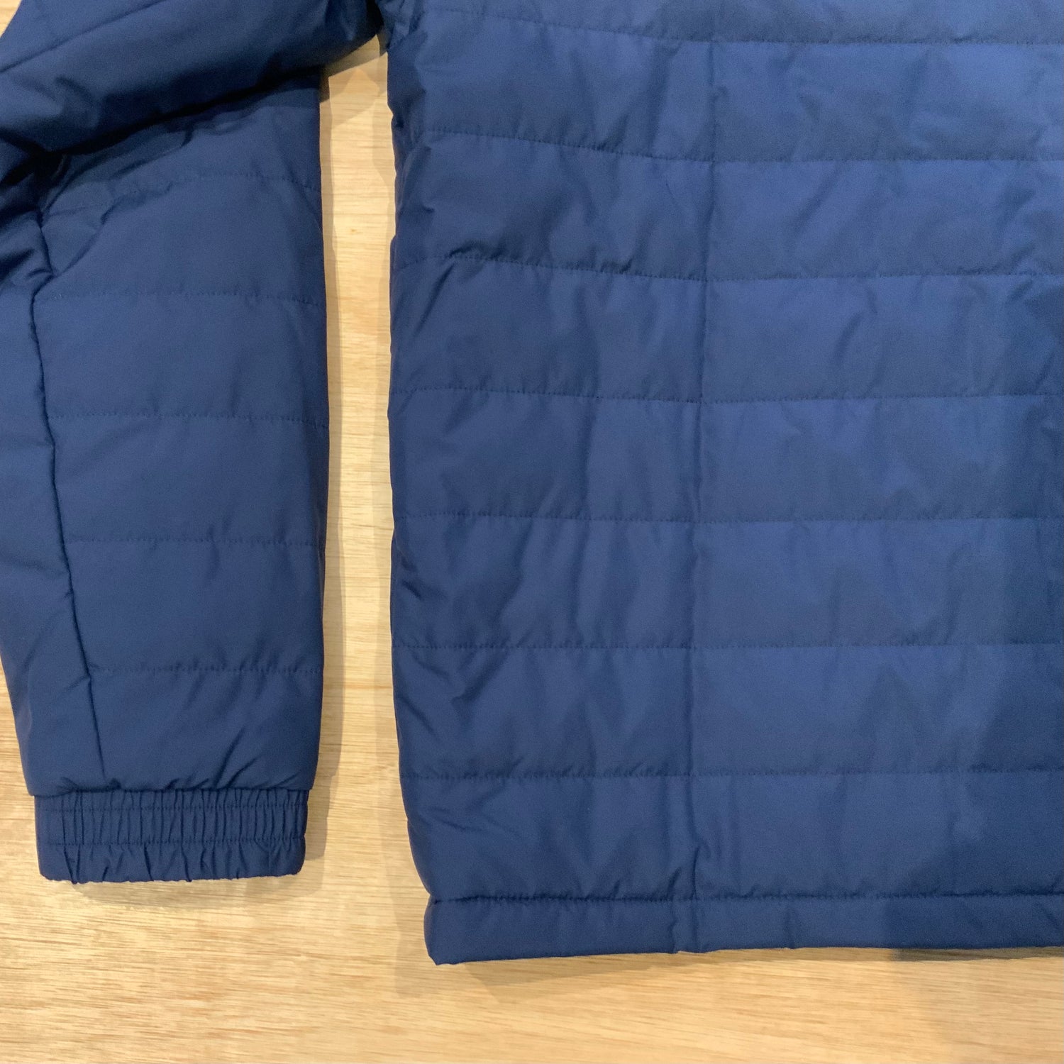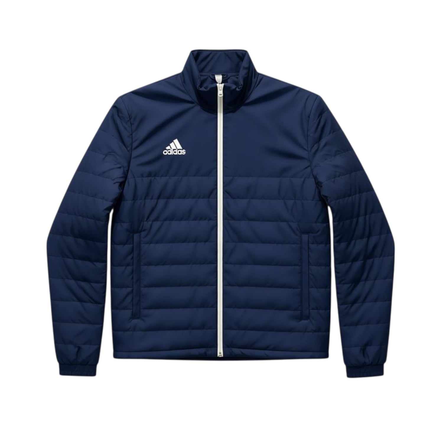 Stay warm and stylish with the Adidas Team Navy Jacket. Features a medium-filled quilted body, padded collar, elasticated cuffs, and two zipped pockets. Perfect lightweight padded jacket for training or everyday wear.