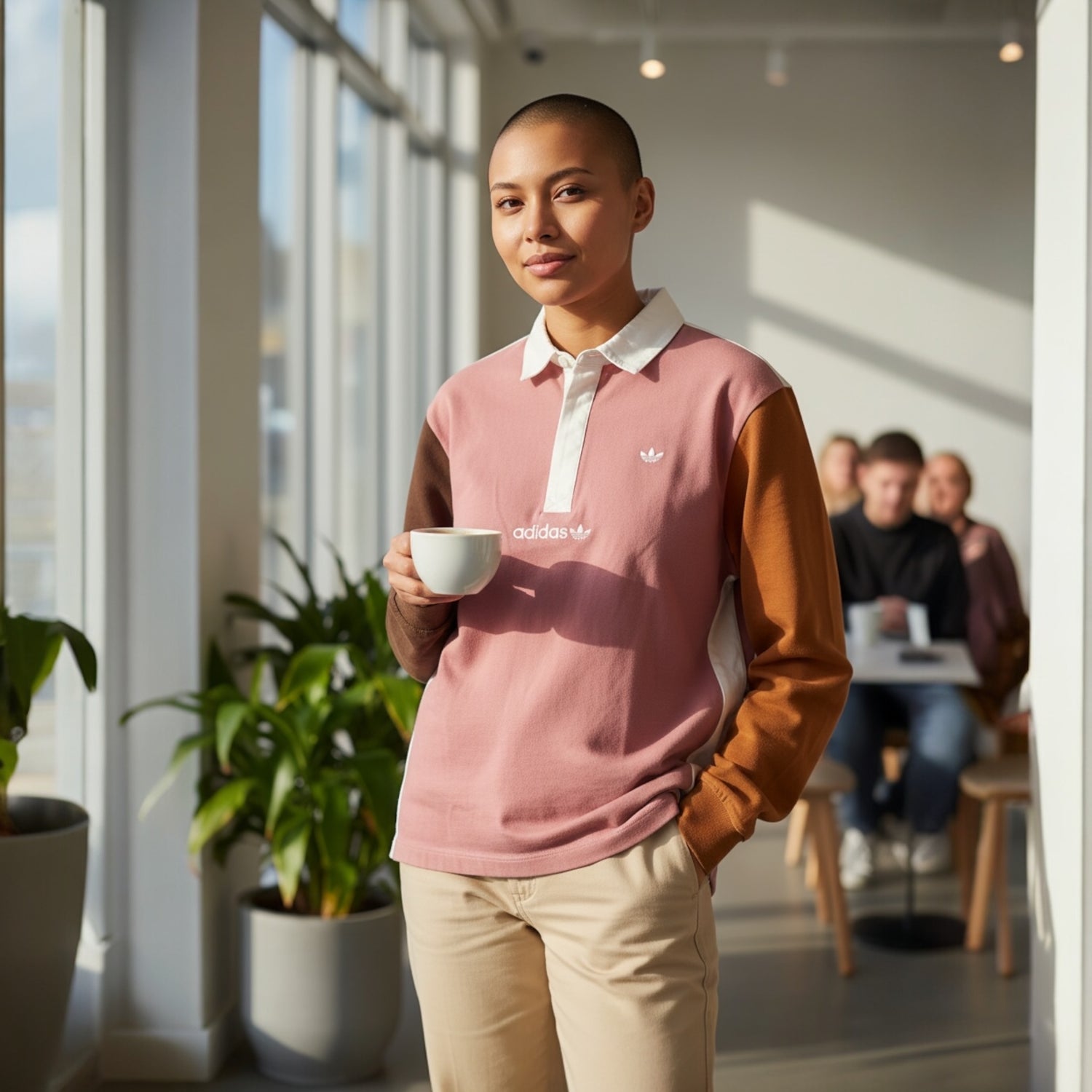 Featuring a stylish mix of pink, white and brown tones, this top stands out while remaining easy to style. The iconic adidas logo on the front adds a premium, authentic touch, making it perfect for casual wear, smart-casual outfits or off-duty looks.
