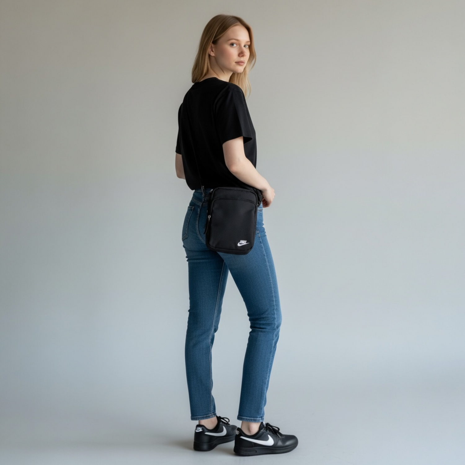Finished in classic black with signature Nike logo branding and durable dual zip closures, this bag is perfect for daily errands, travel, festivals, or casual wear.